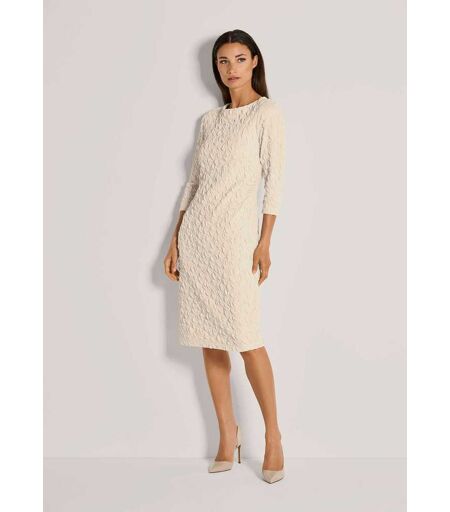 Ein Kleid, das feminin die Figur umschmeichelt und mit außergewöhnlicher Textur begeistert. Die aufregende Bubble-Struktur verleiht dem Einteiler optische Tiefe und macht es zu einem Blickfang von subtiler Extravaganz. Ob Sie flanieren, tanzen oder einfach den Moment genießen: Die Etui-Form inszeniert weibliche Linien auf sinnliche Weise, während Stretch für ein Höchstmaß an Komfort sorgt. Geraffte Seitenpartien setzen verspielte Akzente und lassen das Design lebendig wirken. Dreiviertelärmel begeistern mit eleganter Leichtigkeit, während der Rundhals-Ausschnitt mit zeitloser Noblesse überzeugt. Ein vielseitiger Begleiter für fantasievolle Styles – sinnlich, selbstbewusst und souverän. Ganz gleich, ob zu besonderen Anlässen, im Alltag oder als charmantes Statement-Piece. ...