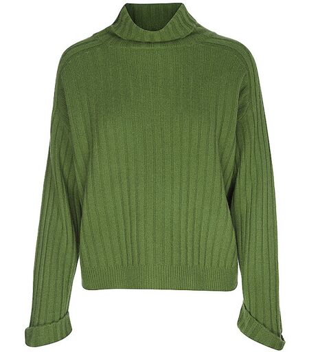 Damen Pullover aus hochwertigem Kaschmir Langarm mit Umschlagbund Rollkragen Strickmuster Lockere Passform Unifarben Farbbezeichnung: Peat Moss Material: 100% Kaschmir ...
