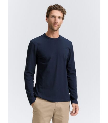 TOM TAILOR Herren Slim Fit Langarmshirt mit Stretch, blau, Uni, Gr. XXXL, baumwolle