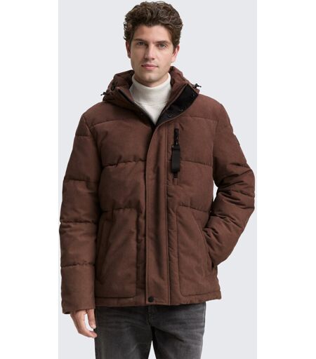 TOM TAILOR Herren Cord Puffer-Jacke mit abnehmbarer Kapuze, braun, Uni, Gr. M, polyester