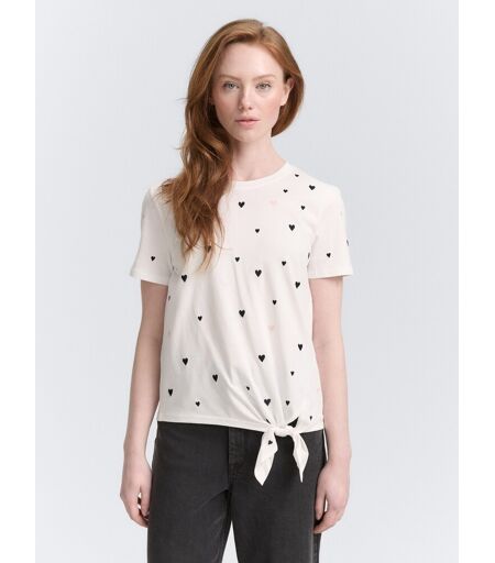 TOM TAILOR DENIM Damen T-Shirt mit Herz-Stickerei, weiß, Gemustert, Gr. L, baumwolle