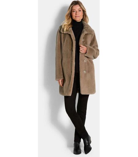 Teddymantel mit Animal-Print-Futter - camel - Gr. 40 von Goldner Fashion