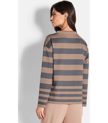 Sweatshirt mit Blockstreifen - beige / blau / gestreift - Gr. 50 von Goldner Fashion