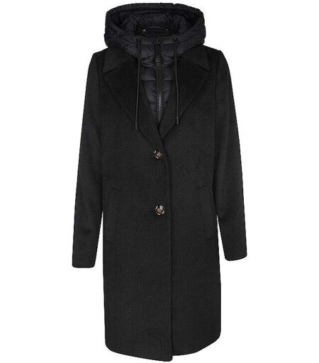 Damen Mantel aus hochwertigem Woll-Mix Herausnehmbares Inlay Kapuze mit Tunnelzug Reverskragen Langarm Schließt mit zwei Knöpfe Seitliche Eingriffstaschen Unifarben Gerade Passform Farbbezeichnung: Grey/Black Material: 68% Polyester 32% Wolle Futter: 55% Viskose 45% Polyester Einsatz: 100% Polyamid Füllung: 100% Polyester Die Marke Comma ist Mitglied der Fair Wear Foundation. ...