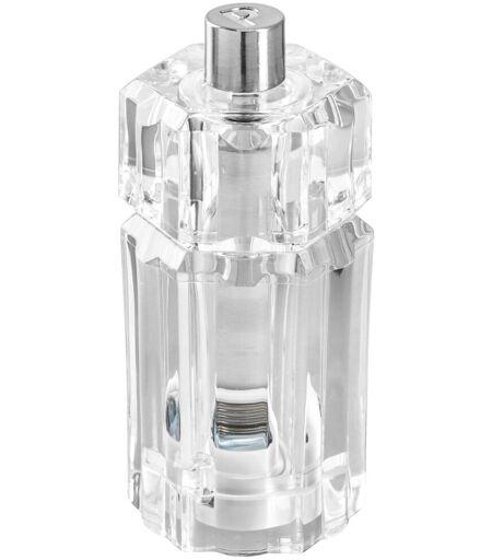 Pfeffermühle aus transparentem Acrylglas. Sie verfügt über ein besonders leichtes und langlebiges Karbonstahl-Mahlwerk. Der Inhalt wird über ein „P“ auf der Einstellschraube oben gekennzeichnet. ...