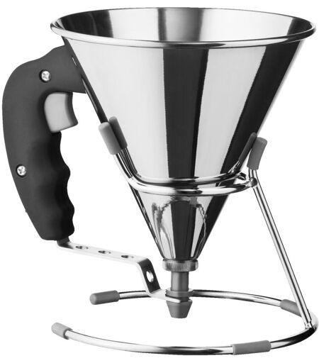Mini-Fondanttrichter aus Chrom-Nickel-Edelstahl 18/0, rostfrei. Ergonomisch geformter Griff aus Polyamid. Einfache Druckmechanik. Ø 7 mm Auslassöffnung - inkl. Ständer mit rutschfester Silikonbeschichtung. Spülmaschinengeeignet. ...