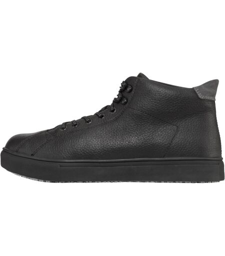 Obermaterial: 100 % Leder, Innenfutter: 100 % Ziegenleder. Knöchelhoher Berufsschuh aus Leder für Damen und Herren. Entspricht der Norm EN ISO 20347:2012. Wasserabweisend, mit reflektierenden Schnürsenkeln, herausnehmbarem, anatomischem Fußbett von OrthoLite® und Lederfutter für ein optimales Fußklima. Schnürung über Ösen und zwei Haken zum schnellen An- und Ausziehen der Schuhe. Die rutschhemmende Gummisohle mit EVA-Kern für mehr Komfort entspricht dem SRC-Standard. Sie bietet optimale Bodenhaftung auf feuchten und rutschigen Böden, wirkt antistatisch und ist resistent gegen Öle und Fette. Lieferung inkl. Schuhlöffel, Schuhreiniger, Schuhbeutel und zusätzlichem Paar Schnürsenkel in Schwarz. ...