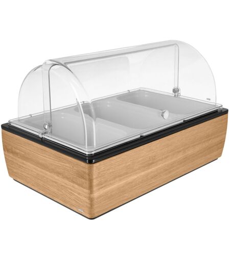 VEGA Kühlvitrine Montana eiche 10 cm Melamin weiß 3 x 1/3; Größe GN 1/1, 55.4x35.2x29.9 cm (LxBxH); eiche/transparent/weiß; rechteckig