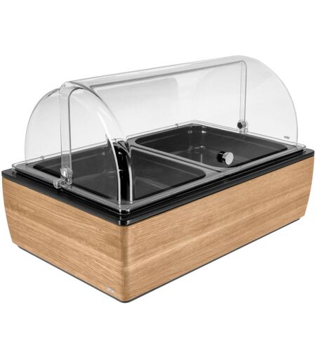 VEGA Kühlvitrine Montana eiche 6,5 cm Melamin schwarz 2 x 1/2; Größe GN 1/1, 57x36.5x27.4 cm (LxBxH); eiche/transparent/weiß; rechteckig