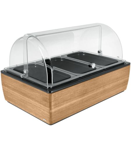 VEGA Kühlvitrine Montana eiche 10 cm Melamin schwarz 3 x 1/3; Größe GN 1/1, 55.4x35.2x29.9 cm (LxBxH); eiche/transparent/weiß; rechteckig