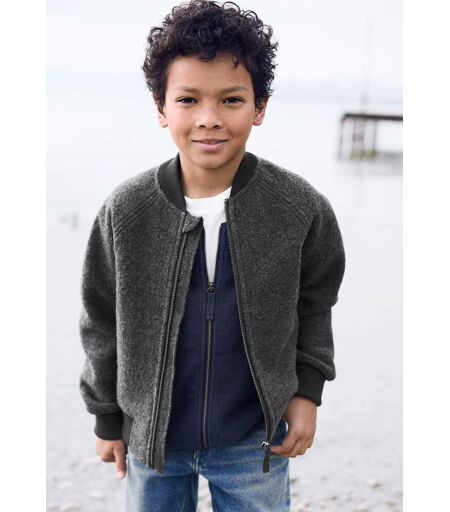 hessnatur Kinder Walk-Bomberjacke aus Bio-Merinowolle - grau Größe 110/116