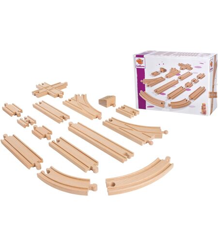 Mit diesem tollen Schienensortiment wächst eine Eichhorn-Holzeisenbahn um bis zu 44 Teile. Es enthält große und kleine Kurvenschienen, lange und kurze gerade Schienen, eine Kreuzung, Weichen und verschiedene Ausgleichsschienen. Die Schienen sind komplett aus FSC-zertifiziertem Holz gefertigt. ...