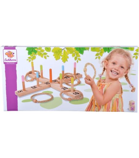 Eichhorn Outdoor Ringwurfspiel: Das Eichhorn Ringwurfspiel aus hochwertigem Holz ist ein cooles Geschicklichkeitsspiel für den Garten. Das Kreuz mit den 9 Pins wird auf den Boden gelegt. Aus einer festgelegten Entfernung müssen die Ringe über die Pins geworfen werden. Jeder Pin bringt unterschiedlich viele Punkte. Wer am meisten Punkte erzielt, hat gewonnen. Für Kinder ab 3 Jahren geeignet. ...