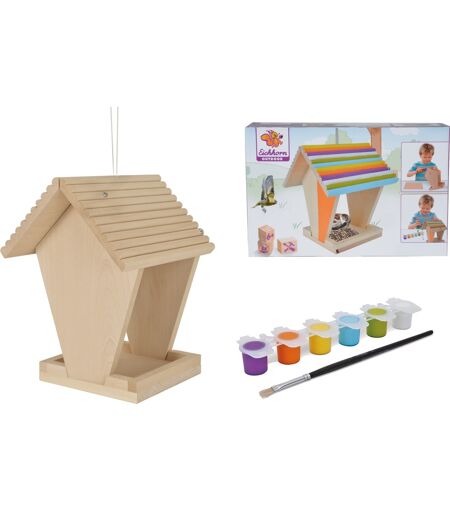 Dieses niedliche kleine Futterhaus mit den Maßen 14 x 14 x 24 cm ist ein Hingucker an sich, aber noch schöner wird es wenn das Haus angemalt und verziert wird. Im Set sind die Einzelteile des Futterhauses enthalten, sowie die dazu passenden Schrauben. Das Futterhaus kann mit einer mitgelieferten Schnur an einem Baum aufgehängt oder mit einer integrierten Vorrichtung auf der Rückseite des Hauses am Baum befestigt werden. Im Set ist ebenfalls ein Pinsel sowie sechs farblich abgestimmte Farben zum Bemalen des Hauses enthalten. So darf munter drauf los gemalt werden, flächig, mit Mustern, Punkten, Strichen, oder mit einem Text. Das Haus wird aus hochwertigem Lindenholz gefertigt und ist für Kinder ab 6 Jahren geeignet. ...