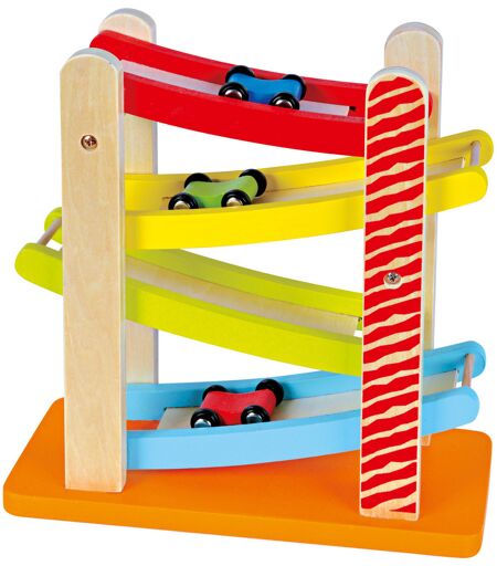 Die Eichhorn Color Autorennbahn mit den vier Etagen sieht klasse aus und ist für Kinder eine wunderbare Beschäftigungsmöglichkeit. Die Autos können von der oberen Etage bis zur letzten nach unten fahren, denn die einzelnen Ebenen sind an den Enden so konstruiert, dass die Autos im Zick-Zack-System nach unten rollen. Für Kinder ab einem Jahr geeignet. ...