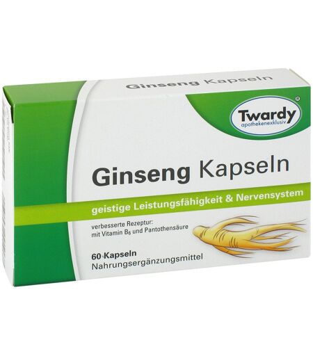 Anwendungsgebiet von Ginseng KapselnGinseng Kapseln sind ein Nahrungsergänzungsmittel mit Ginseng, Vitamin B6 und Pantothensäure. Pantothensäure unterstützt die normale geistige Leistung. Vitamin B6 trägt zu einer normalen psychischen Funktion und einer normalen Funktion des Nervensystems bei. Pantothensäure und Vitami B6 tragen zur Verringerung von Müdigkeit und Ermüdung bei.Wirkstoffe / Inhaltsstoffe / ZutatenZutaten von Ginseng Kapseln: