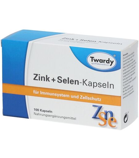 Nahrungsergänzungsmittel sind kein Ersatz für eine ausgewogene und abwechslungsreiche Ernährung und eine gesunde Lebensweise. Zink und Selen sind lebenswichtige Spurenelemente, die mit der Nahrung zugeführt werden müssen. Sie sind von grosser Bedeutung für die Vielzahl von Stoffwechselvorgängen. Zink ist wichtig für Wachstum, gesunden Haarwuchs und unsere Abwehrkräfte.Selen ist Bestandteil eines körpereigenen Schutzsystems von grosser Bedeutung für die Erhaltung intakter Zellen. Unsere Ernährungsgewohnheiten, der Verzehr stark verarbeiteter Lebensmittel und eine unausgewogene Ernährung, können zu einer nicht ausreichenden Versorgung mit diesen essentiellen Vitalstoffen führen. Mit Twardy Zink + Selen-Kapseln kann die Nahrung sinnvoll ergänzt werden.Zutaten:Maisstärke, Selen (Selenhefe) (24%), Gelatine, Zink (Zinkcitrat) (9%), Trennmittel: Magnesiumsalze der Speisefettsäuren; Farbstoffe: , Eisenoxid gelb. gluten- und laktosefrei.Nährwerte: ZusammensetzungTageszufuhr (1 Kapsel)% NRV*Zink12 mg120Selen100 µg182* Nutrient reference value – Referenzmenge gemäß Lebensmittelinformations-Verordnung Verzehrempfehlung:1 x täglich 1 Kapsel mit ausreichend Flüssigkeit unzerkaut schlucken.Hinweis:Die angegebene empfohlene tägliche Verzehrmenge darf nicht überschritten werden.Aufbewahrung: Kühl (6-25 °C) und lichtgeschützt lagern. Außerhalb der Reichweite von kleinen Kindern aufbewahren.Nettofüllmenge:100 Kapseln = 42,1 gHerstellerdaten:Astrid Twardy GmbHFeringastraße 485774 Unterföhring ...