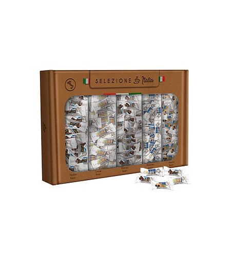 Molto bene – die Italian-Selection von HELLMADie clevere Schokobonbons Italian-Selection von HELLMA kommt mit italienischem Flair in Form von schokoladenüberzogenen Köstlichkeiten zu Ihnen.Versüßt jedes HeißgetränkIn der Italian-Selection erwarten Sie fünf verschiedene Spezialitäten in typisch italienischen Geschmacksrichtungen:Mandorla BiancaTiramisu KrispyEspresso KrispyArancia KrispyLimone KrispyDiese raffinierten Schokokugeln servieren Sie zu Kaffee sowie anderen Heißgetränken und begeistern bereits auf den ersten Blick mit hochwertig gestalteten Verpackungen mit italienischen Städtemotiven.Mit Mischbox in LederoptikDie 200 St./310,0 einzeln verpackten Schokoladen-Köstlichkeiten erhalten Sie in einer stilvollen Mischbox in Lederoptik, die Sie sicher gerne auf dem Tisch stehen lassen, wenn Sie Ihren Gästen die extravagante Italian-Selection Schokobonbons von HELLMA präsentieren.Überzeugen Sie sich selbst! ...