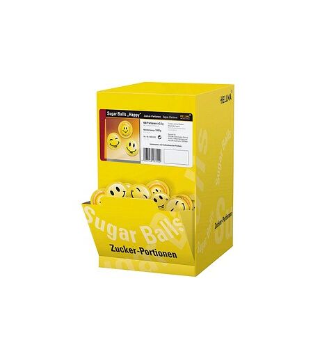 Versüßen Sie sich den Tag mit den HELLMA Zuckersticks Sugar Balls Happy! Die portionsgerechten Zuckersticks sind ideal zum Süßen von Kaffee oder Tee.Die Smileys zaubern ein Lächeln auf jedes Gesicht. Insgesamt 400x 3,6 g Zucker. ...