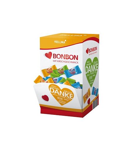 Bedanken Sie sich liebevoll - mit den Bonbons von HELLMAOb einzeln zur Rechnung, im praktischen Display-Karton an der Rezeption, im Hotelzimmer oder an der Kasse: Das leckere Herz-Bonbon von HELLMA ist immer die richtige Form "Danke" zu sagen – und das auch noch in verschiedenen Sprachen, wie Sie beim Blick auf die Verpackung des einzelnen Bonbons feststellen werden. Bestellen Sie einen oder gleich mehrere Kartons mit jeweils 200 St. der leckeren HELLMA Kirsch-Bonbons jetzt zum unschlagbaren Preis bei uns im Online-Shop. ...