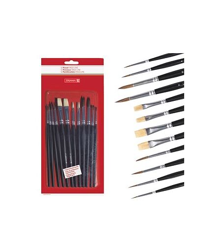 Alle notwendigen Pinsel zum Malen und Zeichnen!Das Pinsel-Set ErgoLine bietet eine Auswahl an Haar- und Borstenpinsel in unterschiedlichen Stärken. Das Set beinhaltet je zwei Pinsel der Größen 2, 4, 6, 8, 10, 12. Dadurch bietet das BRUNNEN Pinsel-Set eine große Auswahl an Pinseln und immer genau den Pinsel, den man gerade zum Malen braucht.Ergonomische GriffzoneDie Stiele der BRUNNEN Pinsel bestehen aus schwarz lackiertem Holz mit einer ergonomischen Griffzone. Sie sind besonders einfach zu halten und daher auch für Kinder sehr gut geeignet.Sorgen Sie für langen Mal-Spaß und bestellen das 12-teilige Pinsel-Set ErgoLine von BRUNNEN gleich hier im Online-Shop! ...