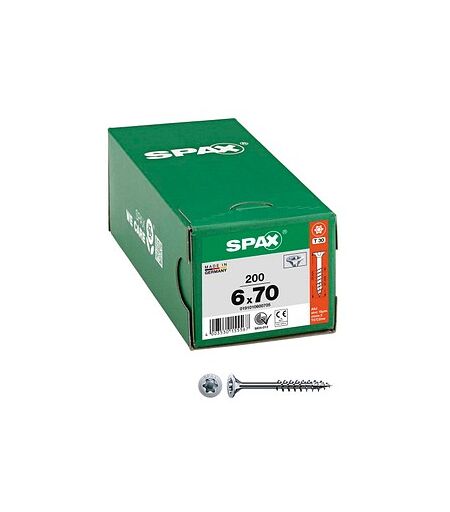 SPAX® Universalschrauben T30 Senkkopf WIROX 0191010600705 6 mm x 70 mm, 200 St. – Allrounder mit BissDie SPAX® Universalschrauben T30 Senkkopf WIROX 0191010600705 6 mm x 70 mm, 200 St. sind die passende Lösung, wenn Sie Wert auf Flexibilität und Belastbarkeit legen. Damit sind sie ideal für unterschiedlichste Anwendungen im Alltag.Präziser AntriebDer T-STAR plus Antrieb (Innensechsrund) gewährleistet eine optimale Kraftübertragung und erleichtert die Arbeit. Die Schrauben lassen sich sicher verarbeiten und sorgen für zuverlässige Verbindungen. Die Teilgewindeschrauben eignen sich besonders, wenn beim Anziehen eine hohe Klemmkraft zwischen zwei Elementen erzielt werden soll. Der glatte Schaft verhindert dabei ein Festbeißen im oberen Werkstück.Für flächenbündige ErgebnisseDank des Senkkopfs lässt sich die Schraube formschlüssig im Material versenken. Das macht sie zur idealen Wahl bei Konstruktionen, bei denen eine ebene Fläche erhalten bleiben muss. Mit ihrer besonders präzisen Schneidtechnik sorgt die 4CUT-Spitze für ein sauberes Anbohren und eine hohe Selbstbohrleistung. Das minimiert Materialbeschädigungen und garantiert eine exakte Passform.Ordnung leicht gemachtGeliefert in einer handlichen Faltschachtel, sind die einzelnen Bestandteile jederzeit ordentlich verstaut und leicht zugänglich.Hochwertiger Stahl für LanglebigkeitDie SPAX® Universalschrauben T30 Senkkopf WIROX überzeugen durch hohe Festigkeit, zuverlässigen Halt und eine langlebige Metallausführung aus hochwertigem Stahl plus WIROX-Oberfläche für vielfältige Anwendungen. Hier erhalten Sie eine Übersicht über weitere Eigenschaften:Durchmesser: 6 mmLänge: 70 mmKopfdurchmesser: 11,6 mmKlingengröße: T30Farbe: silberGreifen Sie zu – für stabile VerbindungenFür eine gute Verarbeitung und Haltbarkeit spricht, dass es sich hier um ein Produkt "Made in Germany" handelt. Vertrauen Sie auf die SPAX® Universalschrauben T30 Senkkopf WIROX 0191010600705 6 mm x 70 mm, 200 St. für Ihre nächsten Projekte und bestellen Sie noch heute! ...