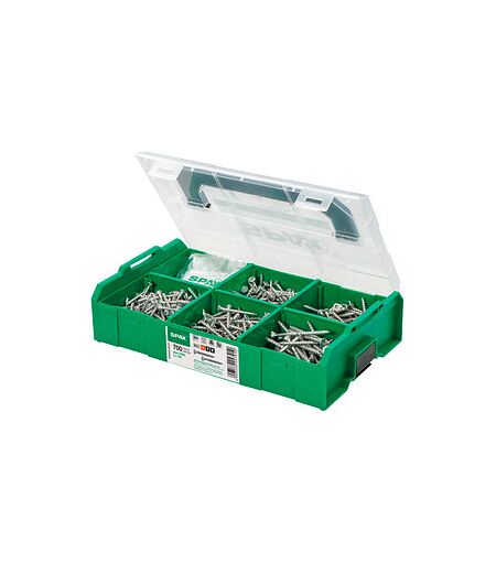 SPAX® Holzbauschrauben-Sortiment L-BOXX Mini WIROX 5000009162019: übersichtlich sortiert und aufbewahrtMit dem SPAX® Holzbauschrauben-Sortiment L-BOXX Mini WIROX 5000009162019 sind Sie für viele Anforderungen rund um den Holzbau bestens ausgestattet. Verschiedene Längen und Durchmesser ermöglichen flexible Verbindungen und eine zügige Verarbeitung. Damit haben Sie immer genau das zur Hand, was Sie gerade brauchen. Es ist ideal geeignet für Holz und Metall.Hervorragende KorrosionsbeständigkeitGefertigt aus robustem Stahl und mit einer WIROX-Beschichtung ausgestattet, bietet das SPAX® Holzbauschrauben-Sortiment L-BOXX Mini WIROX eine hohe Stabilität.Eine besondere Eigenschaft, die den Unterschied machtDiese Besonderheit steckt im SPAX® Holzbauschrauben-Sortiment L-BOXX Mini WIROX 5000009162019: 100% kompatibel zu Sortimo-Fahrzeugeinrichtungen; Modularer Innenraum; Ordentliche Aufbewahrung und sicherer Transport durch SPAX L-BOXXen; Schnelle Klickverbindung.Schneller Start und bessere Kraftübertragung dank 4CUT-SpitzeDer Senkkopf sorgt dafür, dass die Schrauben bündig mit der Oberfläche abschließen. Dies führt zu einer eleganten und sauberen Optik, da die Schraubenköpfe nicht hervorstehen. Diese Eigenschaft ist besonders wichtig für Anwendungen, bei denen eine ebene Fläche erforderlich ist, wie auf Terrassendielen u.Ä. Die 4CUT-Spitze mit ihrer vierkantigen Form verdrängt Holzfasern und reduziert den Spreizdruck. Dies ermöglicht nahezu vorbohrfreies Arbeiten und erleichtert das Eindrehen, insbesondere in reißanfälligen Randbereichen.Starker Halt dank T-STAR plus AntriebDas Vollgewinde greifen gleichmäßig im Werkstoff und bieten dadurch eine hohe Halte- und Zugkraft. Sie sind besonders für Befestigungen geeignet, bei denen eine durchgehende Gewindeverbindung erforderlich ist. Der T-STAR plus Antrieb (Torx (TX)) ermöglicht eine präzise und rutschfreie Kraftübertragung.Stoßfest und hygienisch verstaubarDie praktische Kunststoffbox sorgt für eine organisierte Aufbewahrung und einen schnellen Zugang zum benötigten Material. Das Set beinhaltet: 700 Schrauben in 6 verschiedenen Abmessungen, ergänzt durch 3 praktische Bits.Starten Sie jetzt durchSie werden von der Qualität "Made in Germany" begeistert sein. Greifen Sie jetzt in unserem Online-Shop zu und sichern Sie sich das SPAX® Holzbauschrauben-Sortiment L-BOXX Mini WIROX 5000009162019. ...