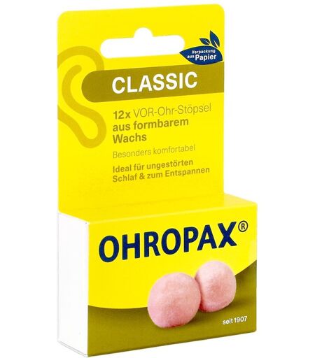 Anwendungsgebiet von Ohropax Classic Wachs Stöpsel Ohropax Classic Wachs Stöpsel sind das bewährte Lärmschutzprodukt seit über 100 Jahren. Aufgrund ihres hohen Tragekomforts sind sie ideal zum ungestörten Schlafen geeignet. Daneben sind sie eine angenehme Hilfe bei Meditation, beim konzentrierten Arbeiten oder Lesen, beim Heimwerken und auch bei lauter Musik.Wirkungsweise von Ohropax Classic Wachs StöpselWirkstoffe / Inhaltsstoffe / ZutatenOhropax Classic Wachs Stöpsel enthält: