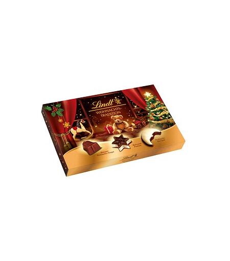 Festlich eingestimmt mit den Pralinen von LindtSchokolade von Lindt ist der Inbegriff zartschmelzender Genuss aus erlesenen Zutaten. Mit der Weihnachts-Tradition lässt es sich wunderbar auf die Festtage einstimmen.Weihnachtsbäckerei 2.0Nougat, Makronen, Marzipan – läuft Ihnen auch schon das Wasser im Munde zusammen? Hierbei handelt es sich jedoch nicht um frisch gebackene Plätzchen, sondern um die Hauptkomponenten der herrlichen Weihnachtspralinen.Schokolade geht immerBesuch hat sich spontan angekündigt? Oder vergessen das passende Mitbringsel zu besorgen? Kein Problem! Die Weihnachts-Tradition von Lindt eigen sich hervorragend für unerwartete Gelegenheiten. Denn Schokolade geht immer!In Weihnachtsstimmung kommen mit den Pralinen Weihnachts-Tradition von Lindt. Noch heute und gleich hier in unserem Online-Shop bestellen!Für Angaben gem. der Lebensmittelinformationsverordnung klicken Sie bitte hier. ...