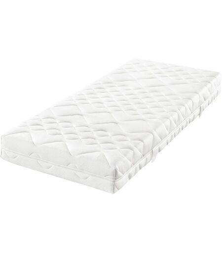 Mit der Matratze Sorgenlos schlafen investieren Sie in erholsamen Schlaf und unkomplizierte Pflege. Das geringe Gewicht erleichtert das Wenden und Drehen – dank der vier praktischen Griffschlaufen sogar im Handumdrehen. Der flexible 7-Zonen-Kaltschaumkern passt sich optimal an Ihre Körperkonturen an und entlastet besonders die Schultern – ideal für Seitenschläfer. Für ein angenehmes Schlafklima sorgen Belüftungskanäle, die die Luftzirkulation verbessern und Feuchtigkeit reduzieren. Der hautfreundliche Doppeljersey-Bezug ist abnehmbar, teilbar und kochfest bis 95 °C, somit besonders hygienisch und pflegeleicht. Außerdem ist die Matratze für verstellbare Lattenroste geeignet und sorgt für eine gleichmäßige Druckverteilung auf beiden Seiten. Hergestellt in Deutschland, steht sie für Qualität und Langlebigkeit. ...