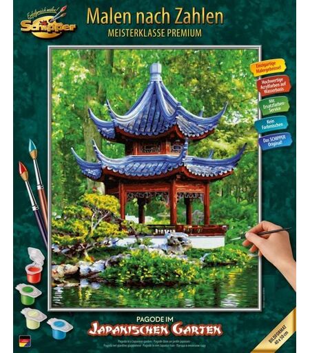 Der japanische Garten steht für die Vollkommenheit der Natur. Er ist zugleich Ort der Ruhe, Inspiration und Meditation. Die Pagode symbolisiert - wie auch die anderen Gestaltungselemente - das Zusammenspiel der unterschiedlichen Natur- und Lebensräume. Ziel ist die Bündelung der positiven Einflüsse auf geistige und körperliche Gesundheit. Die fernöstliche Lebensphilosophie vermittelt Halt und Geborgenheit in einer komplexen Welt. Durch das Motiv mit seinen harmonisch aufeinander abgestimmten Formen und Farben findet sie Eingang in die Welt des Hobbymalens. ...