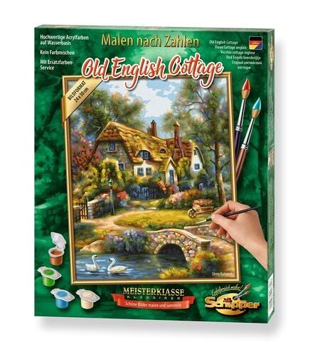 Ein verträumtes altes englisches Landhaus umgeben von einem üppigen Garten. Im Vordergrund eine kleine steinerne Brücke, die über einen Bach führt, in dem zwei Schwäne schwimmen. Ein wahres Idyll, das vom Licht der Herbstsonne in warme Farben getaucht wird. Ein stimmungsvolles Motiv, das Ruhe und Geborgenheit ausstrahlt und zum Hobbymalen einlädt. ...