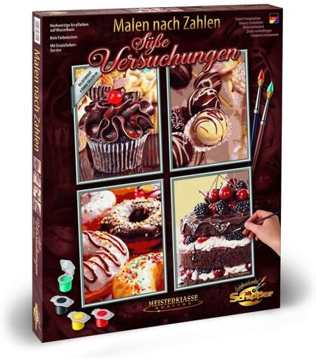 Die süßen Versuchungen locken mit fantastischen Verzierungen aus kunstvoll drapierten Schokoladenbändern, hellen und dunklen Glasuren mit bunten Liebesperlen, sommerlich duftenden Beeren und vollmundigen Kirschen, die dem Hobbymaler schon während des Malens aber auch dem Betrachter das Wasser im Munde zusammenlaufen lassen. Das Quattro „Süße Versuchungen mit Cake Pops, Donuts, Cupcakes und Naked Cakes ist eine harmonische Komposition trendiger Backkultur, die in keinem Zuhause fehlen darf. ...