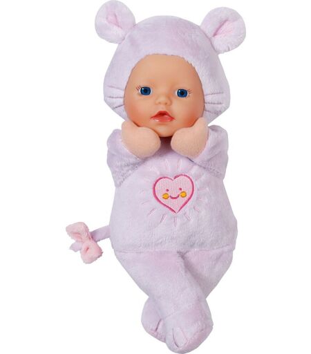 Die BABY born for babies sind bezaubende Puppen, die speziell für Babies entwickelt wurden. Mit ihrem flauschigen Plüschkörper laden sie zum Schmusen ein. So sind sie bereits für die Allerkleinsten geeignet und auch für kleine Hände gut zu greifen. Die weiße Maus ist einfach tierisch kuschelig: Die niedliche Maus-Mütze mit Ohren, der Schwanz mit Schleifchen und das Herzchen-Design am Körper zeichnen diese kuschelige Puppe aus. Mit Hilfe der Fingertaschen in den weichen Ärmchen, kann die Babypuppe mit Bewegungen zum Leben erweckt werden Im Innern ist eine Rassel integriert. Die Puppe ist bei 30° waschbar. ...