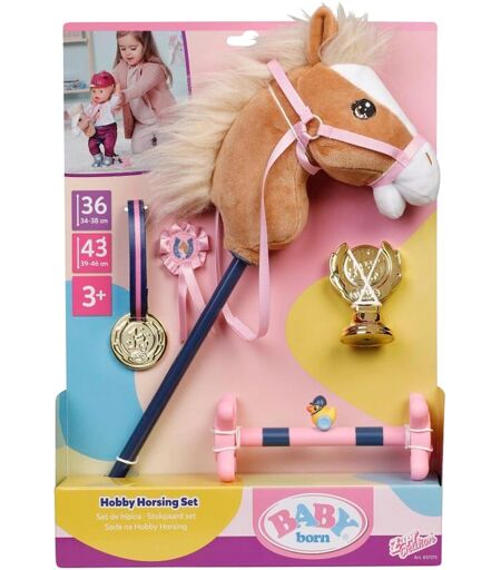 Mit diesem Set kann auch BABY born Emma beim angesagten Hobby Horsing mitmachen. BABY born Puppen Hobby Horsing Set von Zapf Creation Steckenpferd, Hindernis mit Ente Berta, Medaille, Pokal und Turnierschleife passend für Puppen mit einer Größe von 36 und 43 cm aus Textil und Kunststoff ab 3 Jahren geeignet Das Steckenpferd ist ideal für kleine Reitfans, die ihre Puppe mit auf einen Ausritt nehmen wollen. Ein kleines Hindernis mit Ente Berta, eine Medaille zum Umhängen für Puppen, sowie eine Pferdemedaille zum Anstecken ans Pferdegeschirr und ein Siegerpokal ergänzen das Hobby-Horsing Spiel perfekt. ...