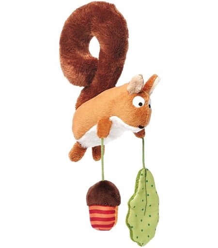 Mit dem Anhänger Eichhörnchen von sigikid für die Babyschale haben die Jüngsten nun ihr Lieblingsspielzeug immer in greifbarer Nähe. So kommt auch auf langen Autofahrten keine Langeweile auf.   ab Geburt geeignet 16(H) x 11(L) x 7(B) cm zum Einhängen an Babyschalen aus flauschigem Plüsch   Der lange, buschige Schwanz des Eichhörnchens wird um den Bügel der Sitzschale herum gebogen. Von oben schaukelt das niedliche Tier herunter und erfreut das Baby. Außerdem hängen eine Nuss und ein dekoratives Blatt in Greifnähe des Kindes. Die Figuren sind mit Knisterpapier und einer Rassel gefüllt, sodass für den Nachwuchs genug Anreize zum Greifen und Spielen gegeben sind. ...