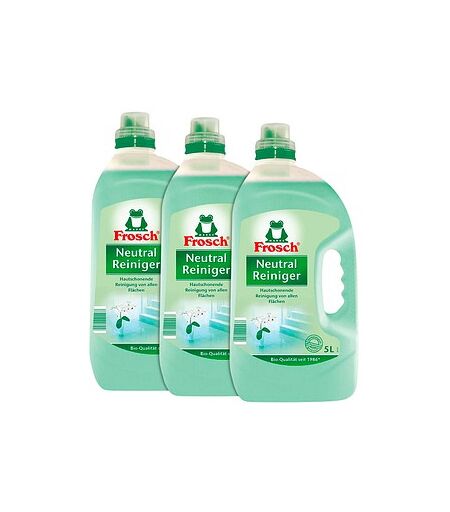 Natürliche, ergiebige Reinigung muss nicht teuer sein!Der Frosch® Allzweckreiniger reinigt schonend Böden, Möbel, sowie Kacheln und sanitäre Anlagen - egal ob Zuhause oder im Büro. Da der Reiniger pH-neutral ist, können Sie auch Ihre Hände bedenkenlos mit dem ihm reinigen!Kraftvolle SauberkeitReinigung aller Oberflächen, Gründliche Reinigung von Rollen, Beseitigung von KalkpH-neutraldermatologisch getestetneutraler DuftBestellen Sie jetzt hier im Online-Shop das Paket mit 3x 5,0 l Frosch® Allzweckreiniger und reinigen Sie alle Oberflächen hautschonend!Bitte beachten Sie die Gefahren- und Sicherheitshinweise:Gefahrenhinweise: -Verursacht Hautreizungen.-Verursacht schwere Augenschäden.-Schädlich für Wasserorganismen, mit langfristiger Wirkung.Sicherheitshinweise: -Signalwort: -Gefahrenklasse/-kategorie: -Schwere Augenschäden/Augenreizung Kat. 1-Ätz-/ Reizwirkung auf die Haut Kat. 2-Chronisch gewässergefährdend Kat. 3 ...