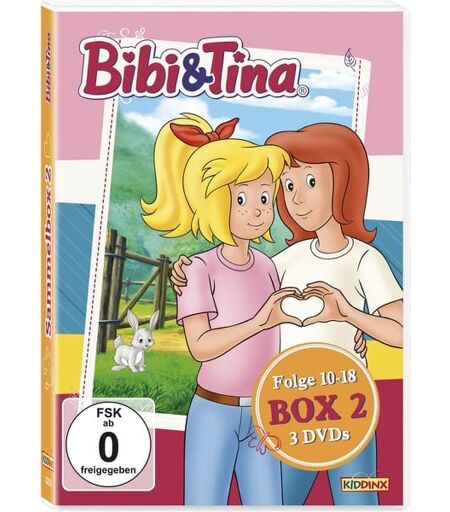 Ab sofort gibt es die Bibi und Tina Zeichentrickfilme in der praktischen Sammelbox: Die Zeichentrickfilme der Folgen 10-18 auf 3 DVDs. DVD 1: Papi lernt reiten, Ein Pony zum Knuddeln, Der Hufschmied DVD 2: Das Zirkuspony, Die geheimnisvolle Statue, Der Hundedieb DVD 3: Die Schmugglerpferde, Das Schlossfest, Abenteuer in der Burgruine ...