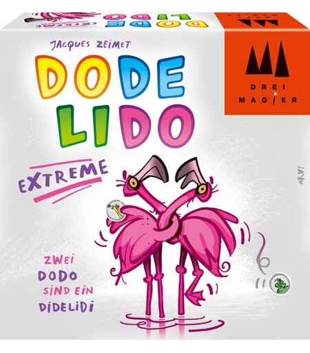 Es wird noch verrückter! Neben DODELIDO gibt es jetzt auch „Do Do“ und „Didelidi“. Wie im Original, legen die Spieler abwechselnd ihre oberste Handkarte offen auf einen der vier Ablagestapel. Nun wird blitzschnell gerufen, was in der Mitte zu sehen ist. Da heißt es cool bleiben und das richtige Kommando geben. Versprecher und Spaß vorprogrammiert. ...