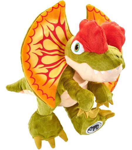 Mit seinem knalligen gelb-orangen Kragen und den beiden roten Kämmen auf dem Kopf ist der Dilophosaurus unverwechselbar. In der Jurassic World ist der giftspuckende Dinosaurier kein angenehmer Zeitgenosse, die 25 cm große Plüschfigur ist jedoch handzahm. ...