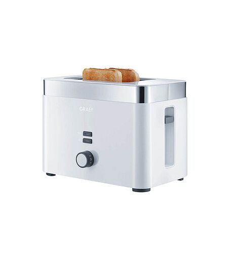 Mit dem GRAEF TO61 Toaster weiß kommt schon am Morgen Freude aufOb Sie süße Aufstriche oder eher herzhaften Käse und Schinken bevorzugen – mit dem GRAEF TO61 Toaster weiß kommen Sie garantiert auf Ihre Kosten. Und das nicht nur zum Frühstück!Der Bräunungsgrad ist variierbarDank einstellbarem Bräunungsgrad rösten Sie Ihren Toast so wie Sie ihn gerne haben. Und wenn der Bräunungsgrad doch einmal falsch eingestellt sein sollte, können Sie einfach mit der Stoppfunktion eine zu dunkle Bräunung verhindern.So geht's noch schneller: mit AuftaufunktionGefrorene Brotscheiben lassen sich mühelos mit der speziellen Auftaufunktion auftauen.Mit Krümelschublade für eine einfache ReinigungNicht nur Toast, sondern auch knusprig-warme Brötchen können Sie mithilfe des vorgesehenen Aufsatzes aufbacken oder rösten. Aufgrund der integrierten Krümelschublade können Sie das Gerät ganz leicht von heruntergefallenen Speiseresten befreien. So wird verhindert, dass sich die Krümel mit der Zeit absetzen, was zu schlechten Gerüchen führen kann.Auch optisch ein HighlightDamit sich Ihr neuer Alltagsbegleiter gut in Ihre Küche integriert, passt er dank der neutralen Farbe weiß zu jeder Einrichtung. Der GRAEF Toaster TO61 hat die Maße 18,0 cm x 27,0 cm x 19,3 cm (BxTxH).Danach haben Sie gesucht?Bestellen können Sie den GRAEF TO61 Toaster weiß bequem hier bei uns im Online-Shop. ...