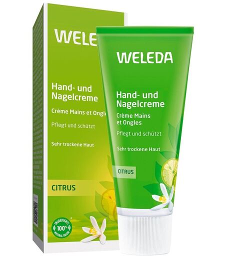 Anwendungsgebiet von Weleda Citrus Hand- und NagelcremeWeleda Citrus Hand- und Nagelcreme pflegt Ihre Haut samtweich und unterstützt das Wachstum schöner gesunder Nägel. Sie belebt die Sinne durch ihren erfrischenden Duft aus echtem ätherischem Citrusöl. Natürliches Carnauba- und Wollwachs schützen brüchige Nägel. Feines Mandelöl pflegt die Nagelhaut und trägt damit zum Wachstum gesunder kräftiger Nägel bei. Die ausgewählten Heilpflanzenauszüge machen selbst rissige Haut wieder spürbar geschmeidig.Wirkstoffe / Inhaltsstoffe / ZutatenInhaltsstoffe von Weleda Citrus Hand- und Nagelcreme: