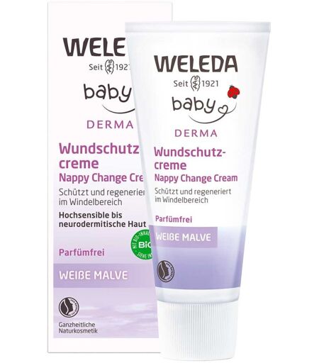Anwendungsgebiet von Weleda weisse Malve WundschutzcremeWeleda weisse Malve Wundschutzcreme mit sorgfältig ausgewählten Natursubstanzen regeneriert wirksam gereizte Haut im Windelbereich. Ein wertvoller Auszug aus Weißer Bio-Malve beruhigt hochsensible Haut. Bio-Kokosöl und Bio-Sesamöl unterstützen die natürliche Schutzfunktion der Haut. Zinkoxid schützt vor Nässe.