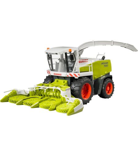 Der Claas Jaguar 900 Feldhäcksler ist eine detaillierte Nachbildung des Originals, welcher in Wirklichkeit eine beeindruckende Erntemaschine des marktführenden Unternehmens der Erntetechnik in Europa ist. Das Modell zeichnet sich durch ein Maisgebiss mit vier im Fahrbetrieb angetriebenen Einzugsscheiben aus. Um auch bei Unebenheiten im Spielgelände die Funktion zu behalten, ist das Maisgebiss pendelnd aufgehängt und wird durch eine Torsionsfeder in der Mittellage stabilisiert. Das Maisgebiss lässt sich abnehmen, was den Blick auf das angedeutete Häckselwerk freigibt. Für den Strassentransport können die beiden äußeren Einzugsscheiben nach oben geklappt und das gesamte Maisgebiss angehoben werden. Weiterhin ermöglichen es die zu öffnenden Gehäuseklappen, die Technik, wie Motor und Antriebsriemen zu betrachten. Der auffällige Auswurfkrümmer lässt sich vielfach einstellen. Eine geländegängige Pendelachse, Profilreifen und eine teilverglaste Fahrerkabine runden das Bild ab. ...