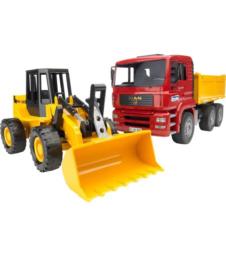 Bruder MAN TGA Kipplastwagen mit Gelenkradlader FR130, Modellfahrzeug