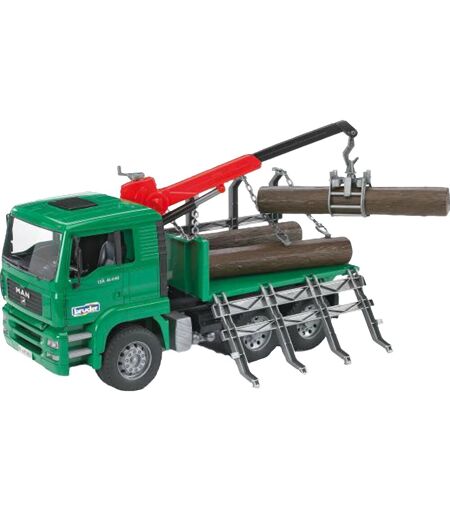 Bruder MAN Holztransport-LKW mit Ladekran und 3 Baumstämmen, Modellfahrzeug