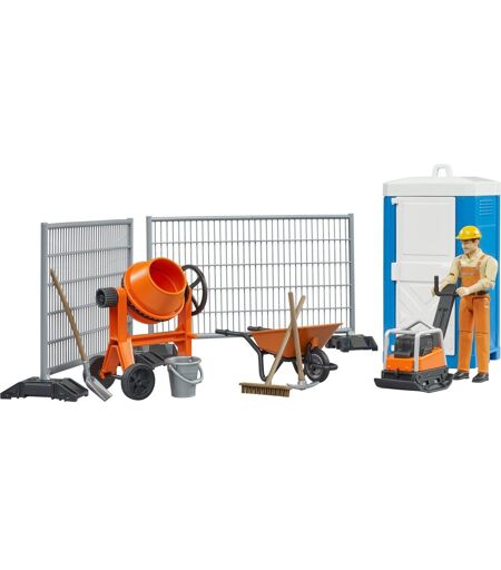 Das neue bworld Baustellenset passt zu einer Vielzahl von bruder-Fahrzeugen zum Thema Baustelle. Denn mit diesem Themenset können kleine Bauarbeiter verschiedenste Baustellenszenen realistisch nachspielen. Mit dabei: Bauzäune, die den Baustellenbereich absichern. Zum Lieferumfang gehören außerdem eine Rüttelplatte und eine Mörtel-Mischmaschine. Für die persönlichen Bedürfnisse des Bauarbeiters ist außerdem eine mobile Toilette enthalten. ...