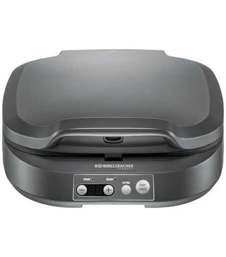 Mit dem Rommelsbacher ST 1800 Sandwichmaker können Sie bis zu vier American XL Sandwiches (ca. 12,5 x 12,5 cm) gleichzeitig zubereiten. Die massiven Alu-Druckguss Platten mit Backmulden und Trennsteg sorgen für eine optimale Hitzeverteilung und eine leichte Reinigung durch die hochwertige 2-Lagen Antihaftbeschichtung. Der Sandwichmaker ist leistungsstark und schnell einsatzbereit. Sie können die Backzeit individuell einstellen, dank der Soft-Touch Tasten, dem LED-Display und der 15 Minuten Zeitschaltuhr. Außerdem verfügt der Sandwichmaker über eine automatische Abschaltung, eine Nachbräun-Funktion und ein Cool-Touch Gehäuse mit wärmeisoliertem Handgriff. Produkt-Highlights: Massive Alu-Druckguss Platten, leicht zu reinigen durch Antihaftbeschichtung; Große Backmulden für American XL Sandwiches (ca. 12,5 x 12,5 cm), leistungsstark und schnell einsatzbereit; Soft Touch Tasten, LED-Display; 15 Minuten Zeitschaltuhr für individuelle Backzeiten; Automatische Abschaltung, Taste zum Nachbräunen; Cool Touch Gehäuse und wärmeisolierter Handgriff; Rutschfeste Silikonfüße, Kabelaufbewahrung; Leistung Leistung: 1800 W; Überhitzungsschutz; Ausstattung Ein-/Aus-Schalter; fest eingestellte Temperatur; Temperaturkontrollleuchte; Betriebskontrollanzeige; 8 Sandwich-Dreiecke pro Toastvorgang; Backmulden für 4 Sandwiches (ca 12,5 x 12,5 cm); Antihaft-Beschichtung; Griff-Verriegelungssystem; ; Gehäuse-Eigenschaften wärmeisoliertes Gehäuse; wärmeisolierte Griffe; Hochkant-Aufbewahrung; rutschfeste Silikonfüße; Kabelaufwicklung; Farbe schiefergrau; ...
