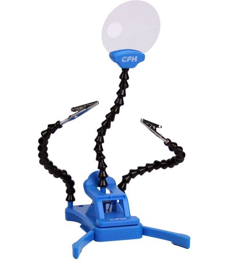 Dieser Lötassistent ist die unverzichtbare „dritte Hand“ bei Lötarbeiten. Er ist ausgestattet mit 2 Armen mit Klemme, die in alle Richtungen verstellbar sind. Die Lupe ist ebenfalls in alle Richtungen verstellbar und hat 2 Vergrößerungsmöglichkeiten eine 2,5-fache und eine 5-fache Vergrößerung. Die ausklappbaren Füße sorgen für zusätzliche Stabilität. ...