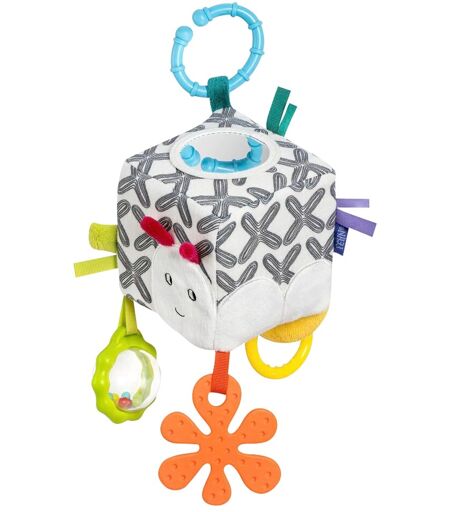 Der Activity-Würfel Raupe von Fehn lädt Dein Baby zum Spielen, Entdecken, Greifen und Tasten ein. Als Teil der Kollektion DoBabyDoo Black&White; setzt er auf klare Kontraste und markante Farbakzente. Activity-Würfel Raupe von Fehn aus der Kollektion DoBabyDoo Black&White; C-Ring zur Befestigung mit Glocke, Rassel, Beißelement, Spiegel, Greifring aus Textil und Kunststoff, Handwäsche ab Geburt geeignet Der Activity-Würfel von Fehn bietet Deinem Mini abwechslungsreichen Spaß: Das Kleine kann eine Glocke, eine Rassel, ein Beißelement, einen Spiegel und einen Greifring erkunden. Spielerisch schult es dabei seine sensorische Wahrnehmung und Motorik. Besonders cool: Dank des C-Rings kannst Du den Würfel einfach am Bett, dem Laufgitter, einem Kinderwagen oder einer Babyschale befestigen. So ist das Lernspielzeug überall dabei. ...